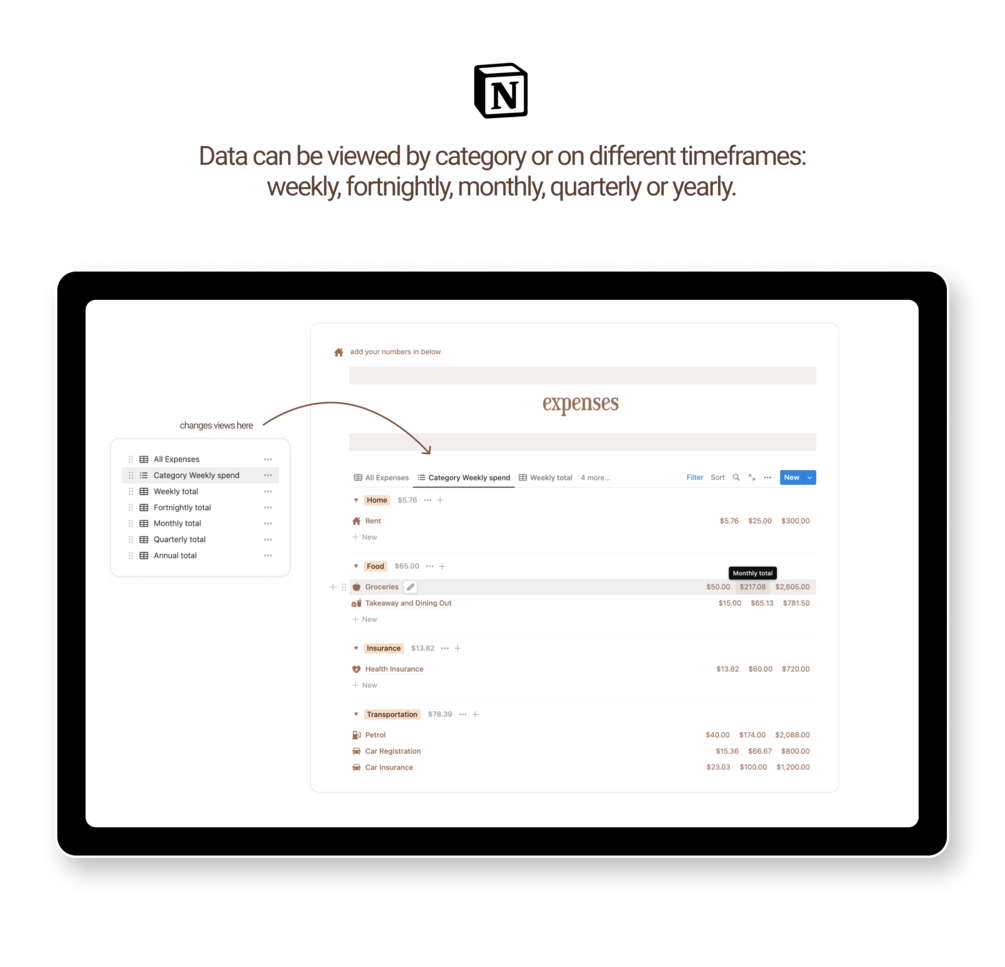 • View weekly, monthly, or yearly expenses.