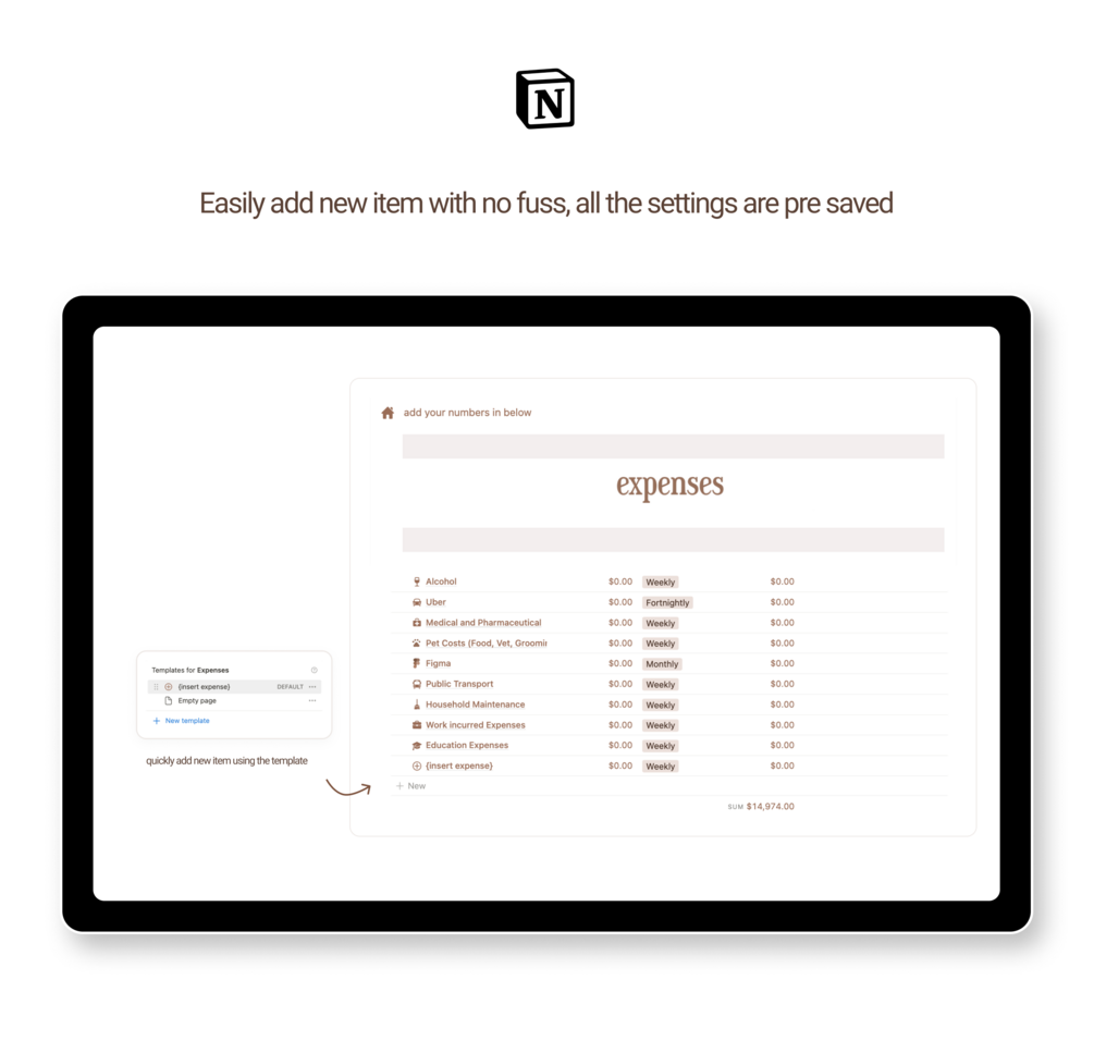 Easy budget Notion template